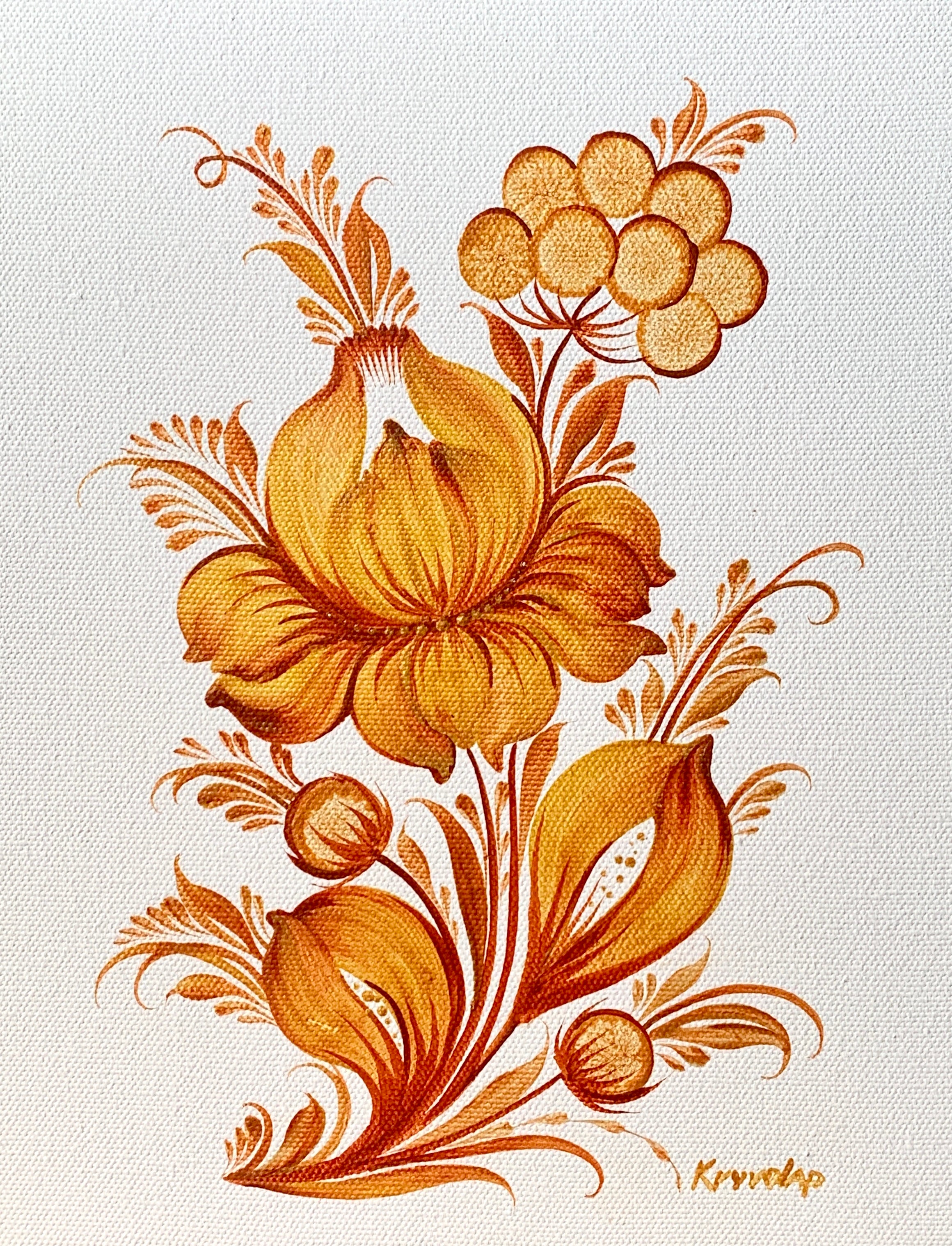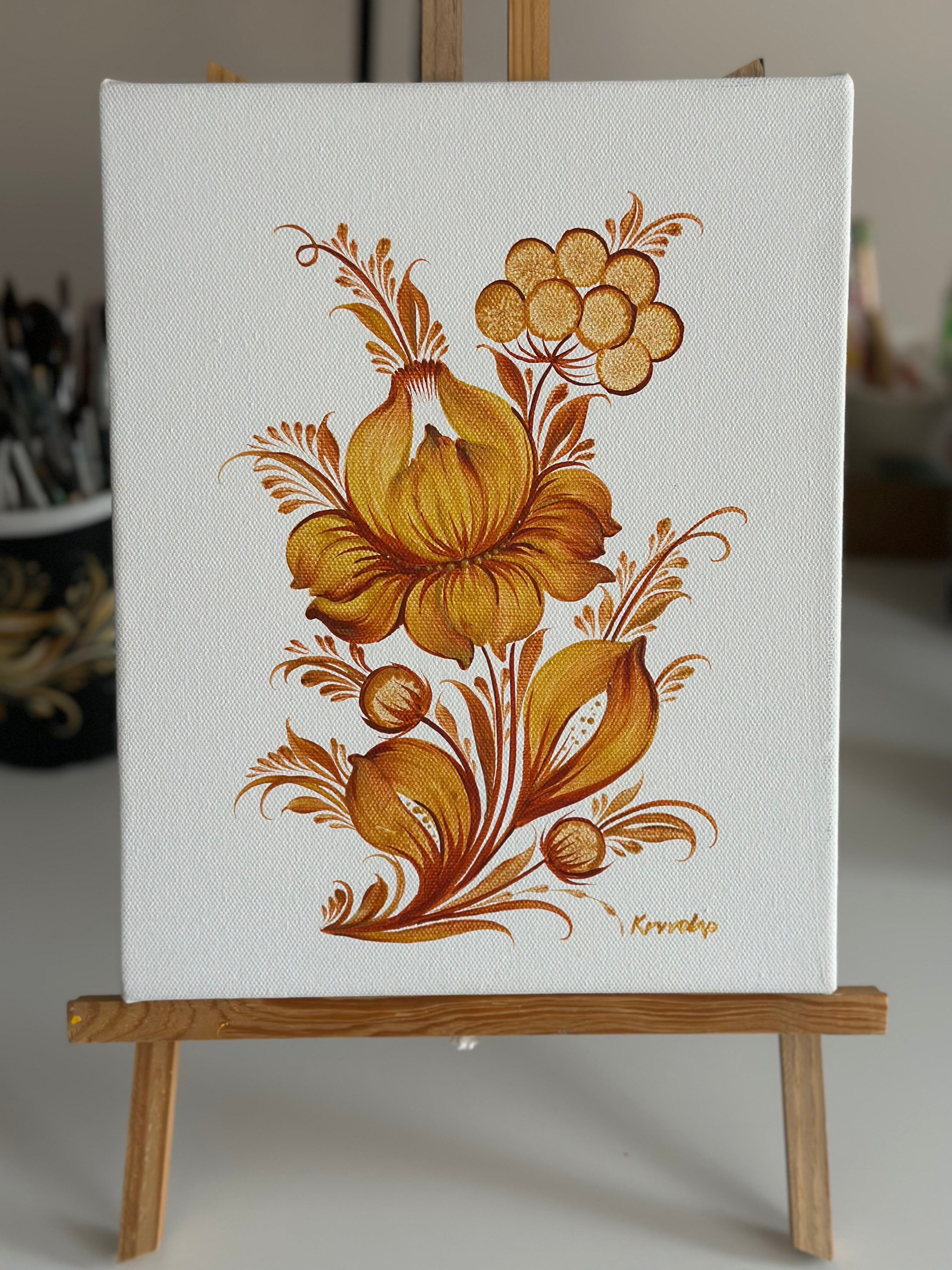 Style: Contemporary Ukrainian decorative painting style Petrykivka