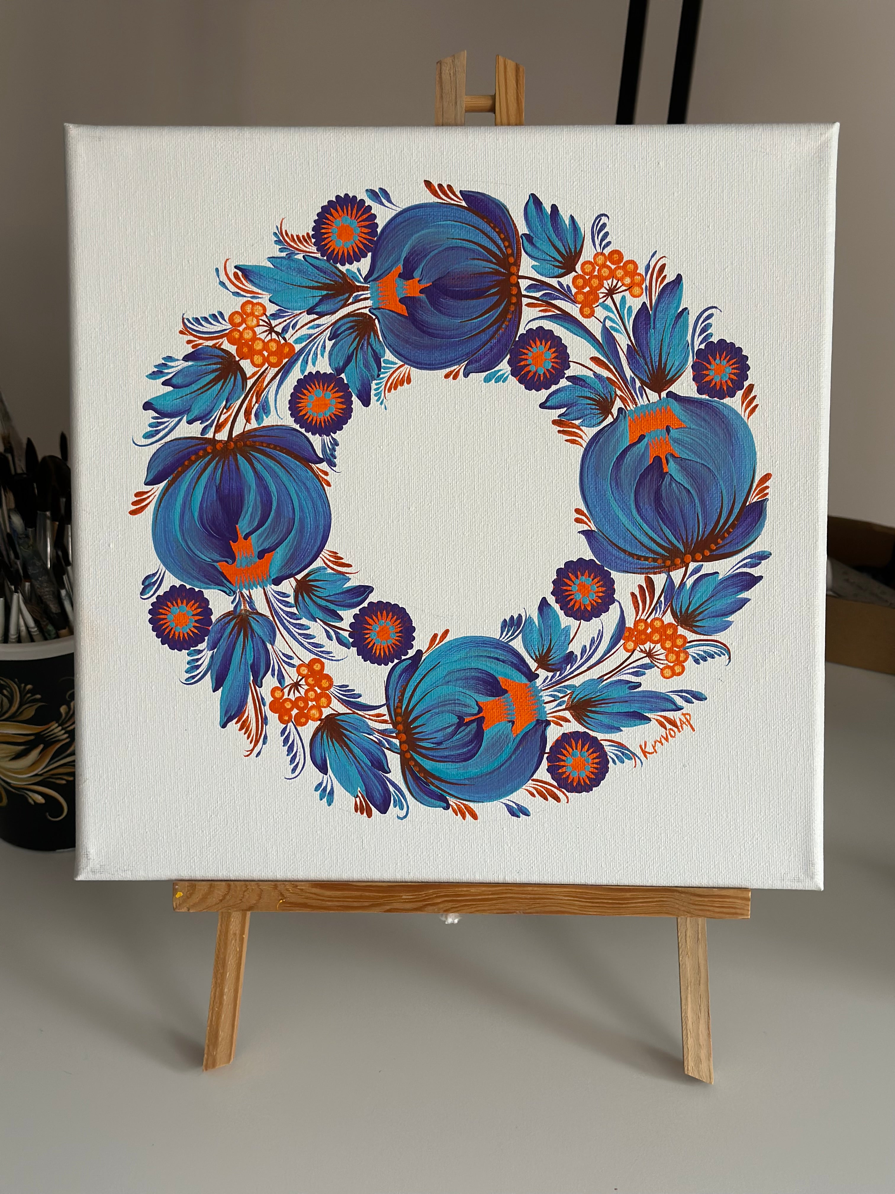 Style: Traditional Ukrainian decorative painting style Petrykivka