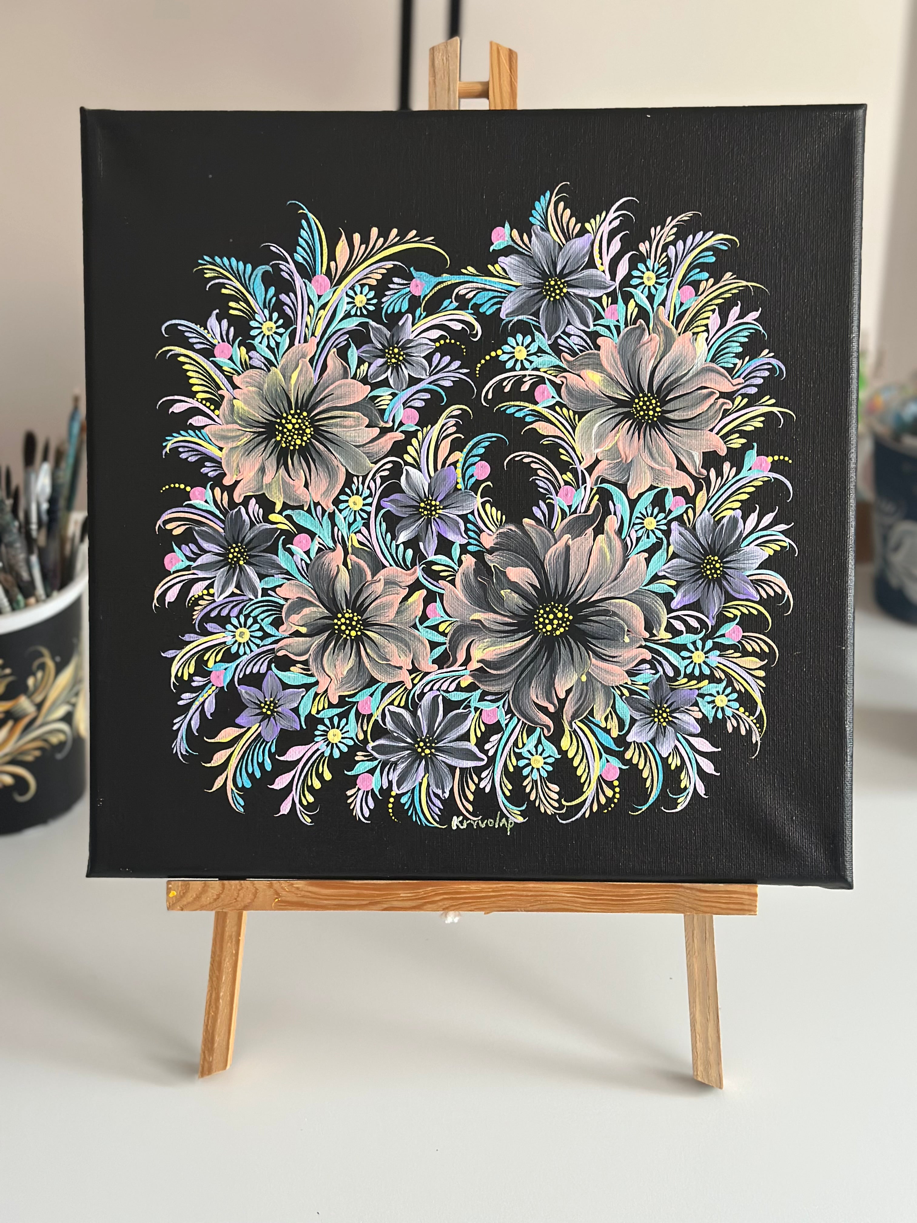 Style: Traditional Ukrainian decorative painting style Petrykivka