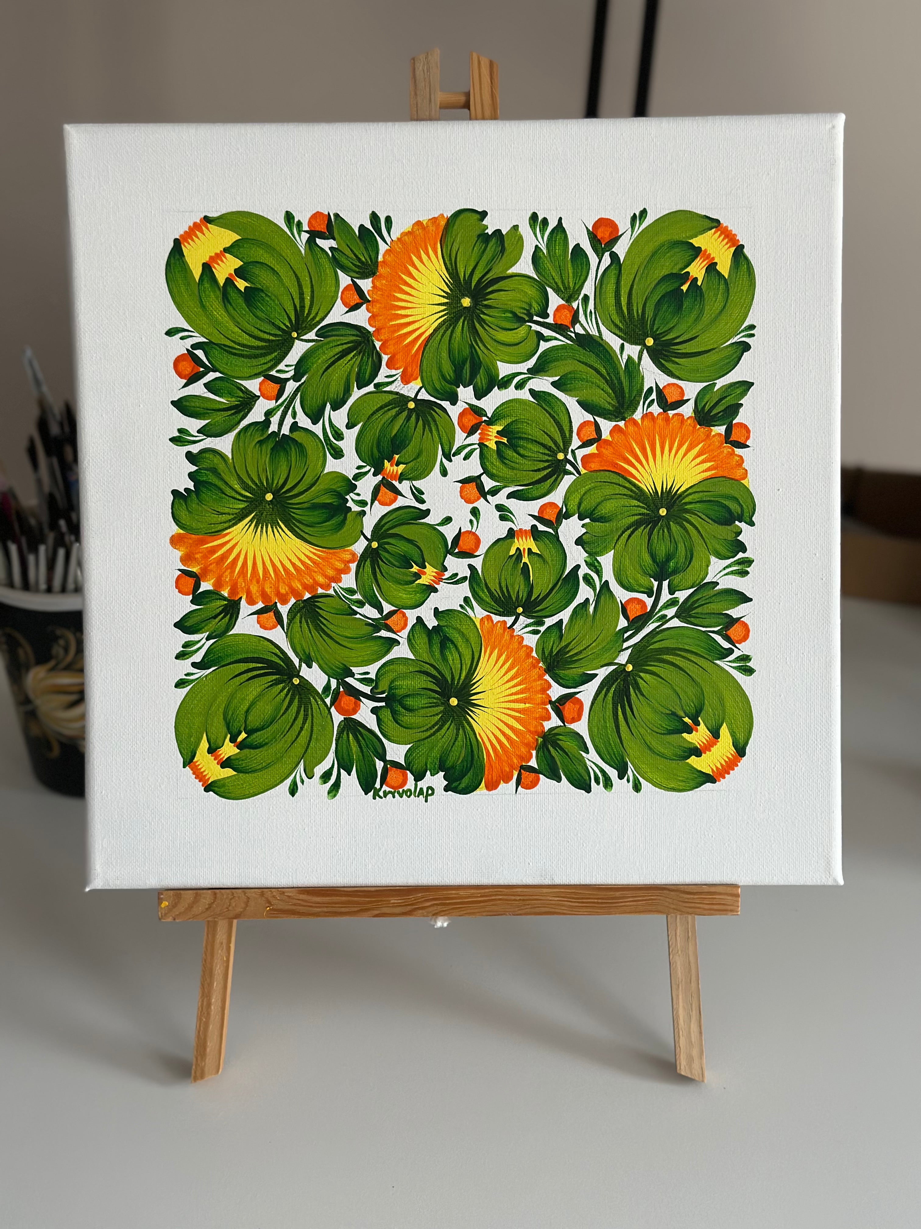Style: Traditional Ukrainian decorative painting style Petrykivka