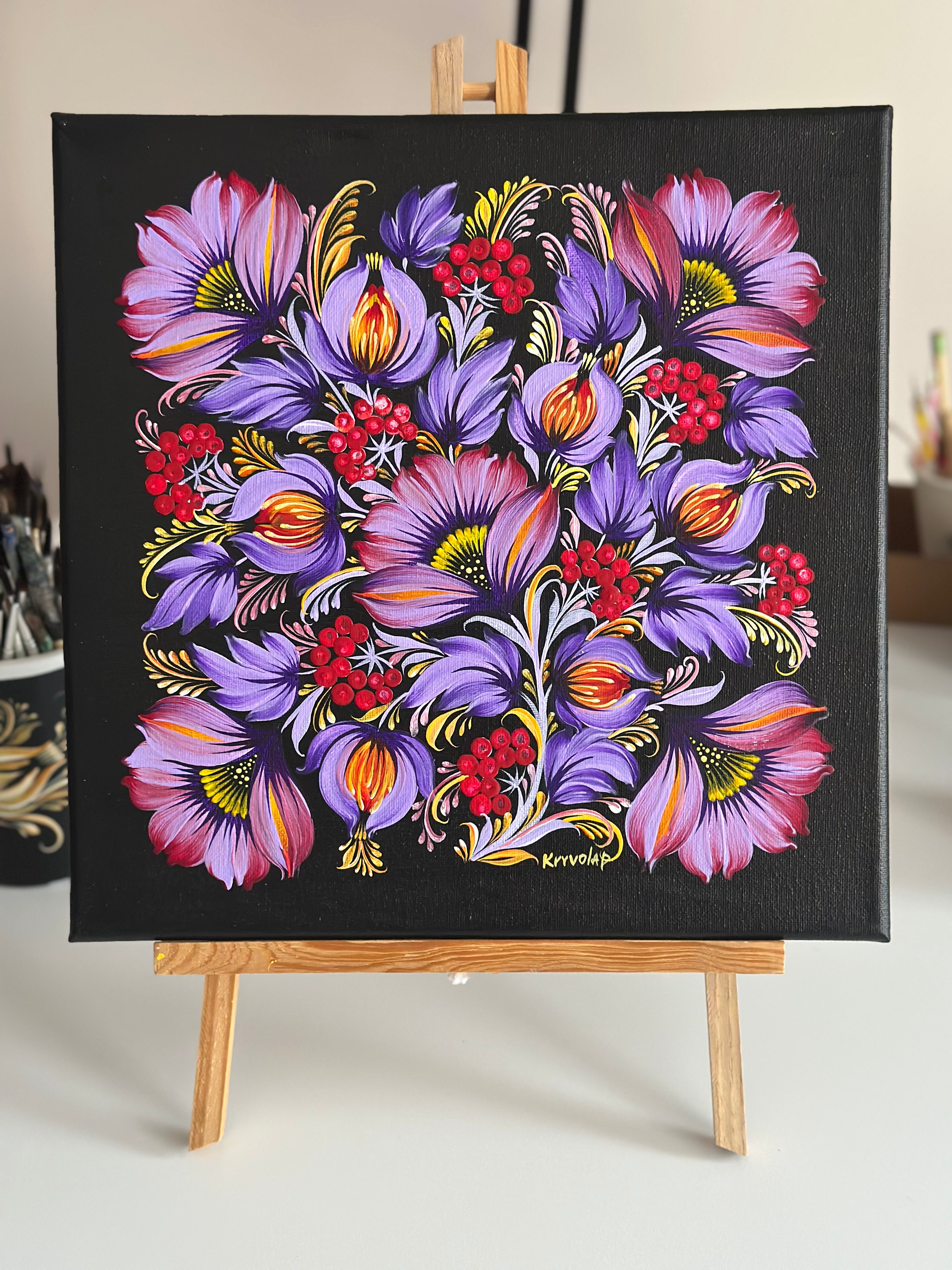 Style: Traditional Ukrainian decorative painting style Petrykivka
