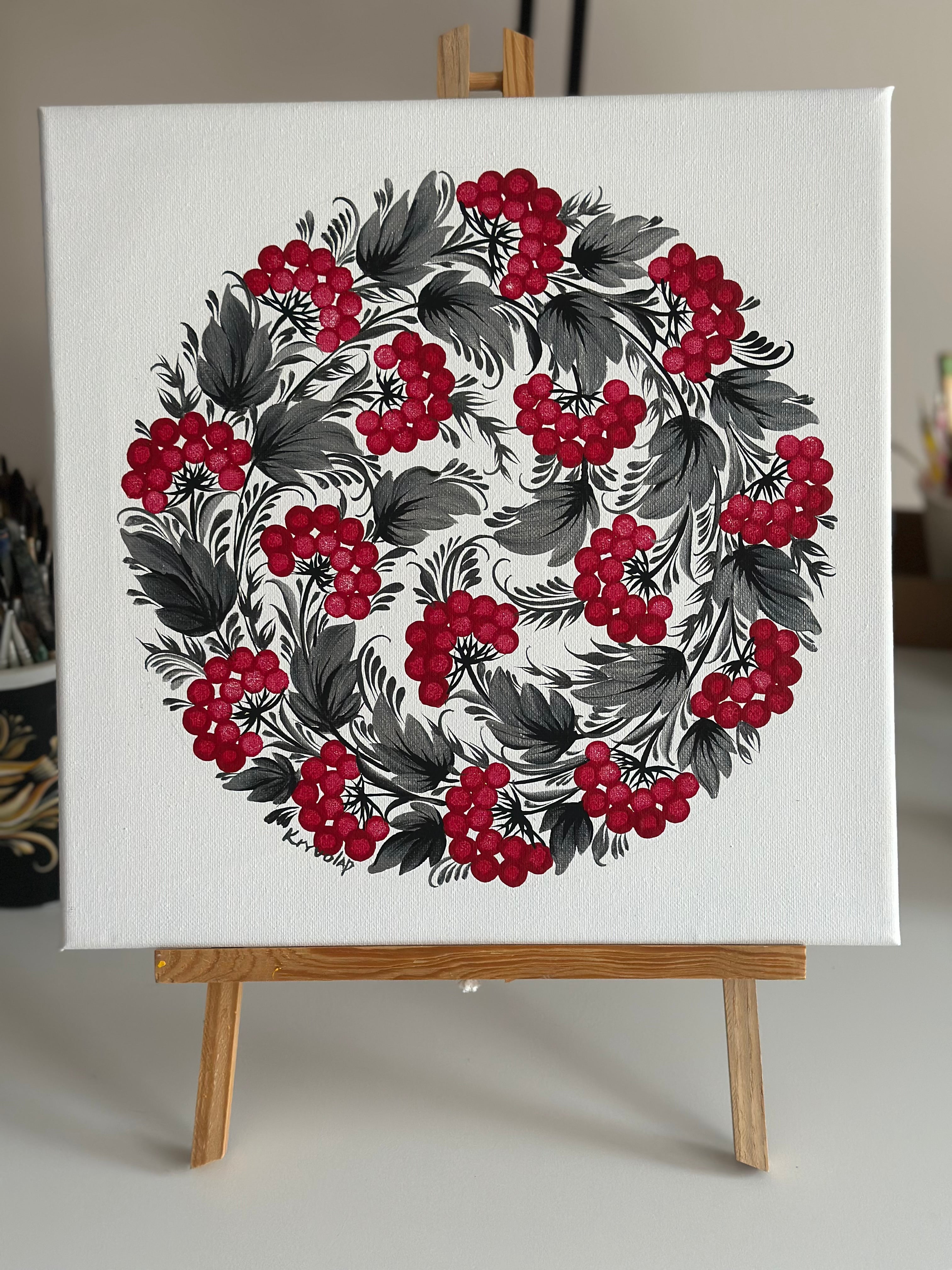 Style: Traditional Ukrainian decorative painting style Petrykivka