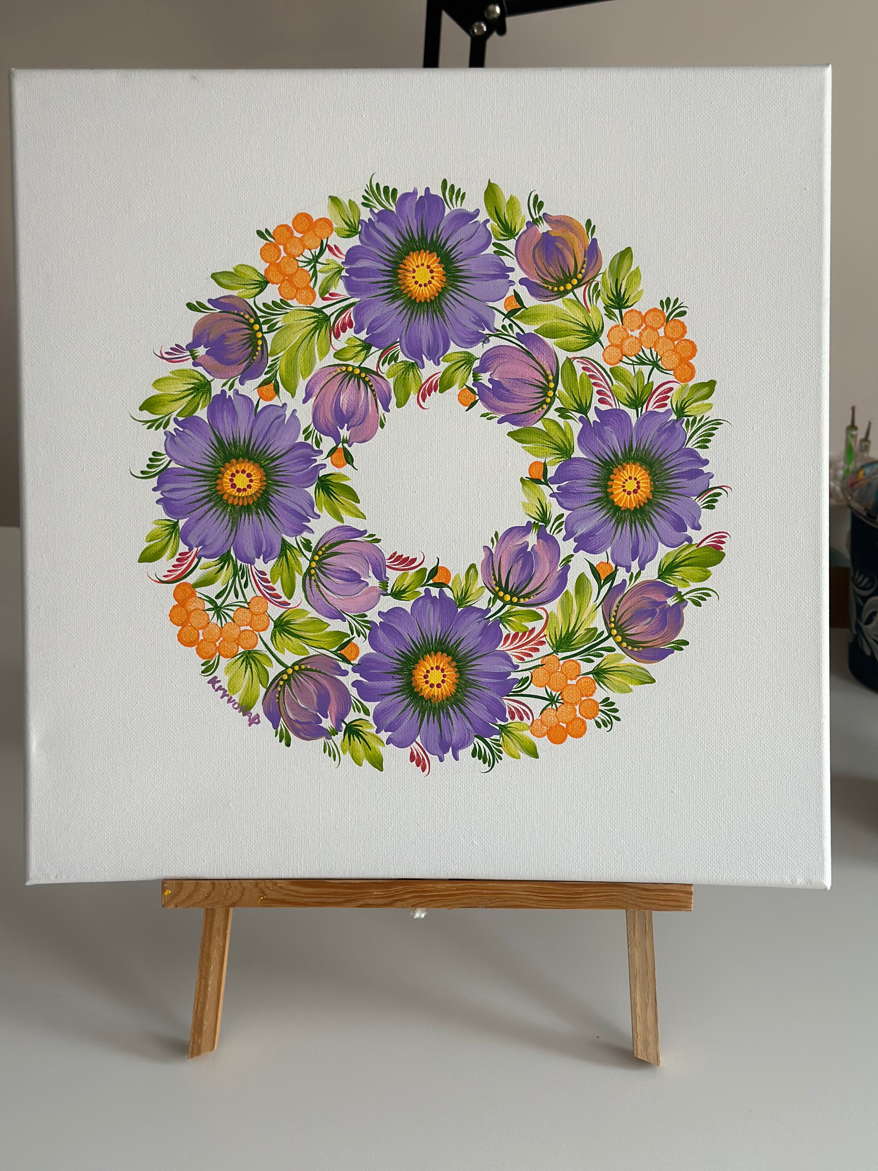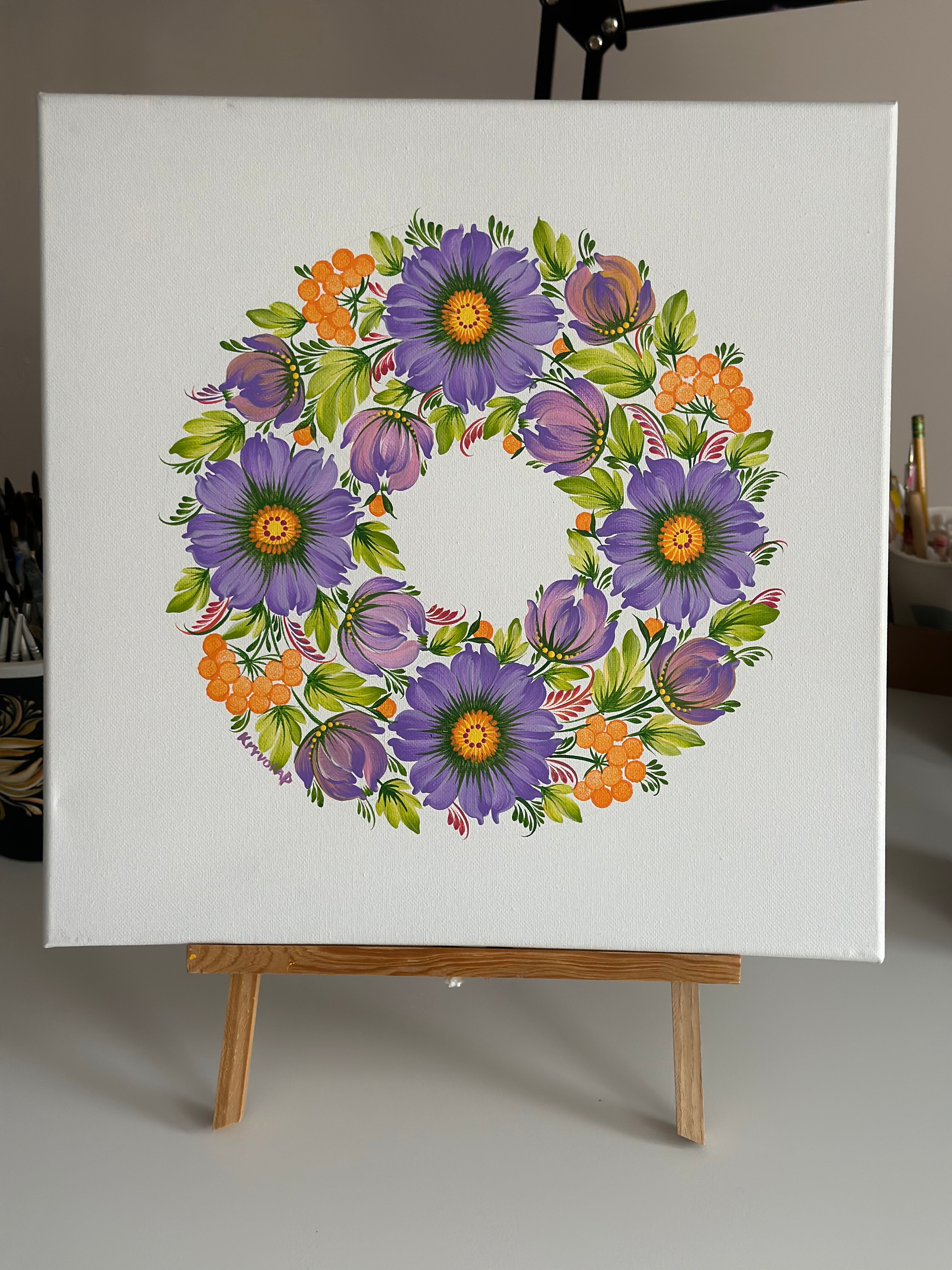 Style: Traditional Ukrainian decorative painting style Petrykivka