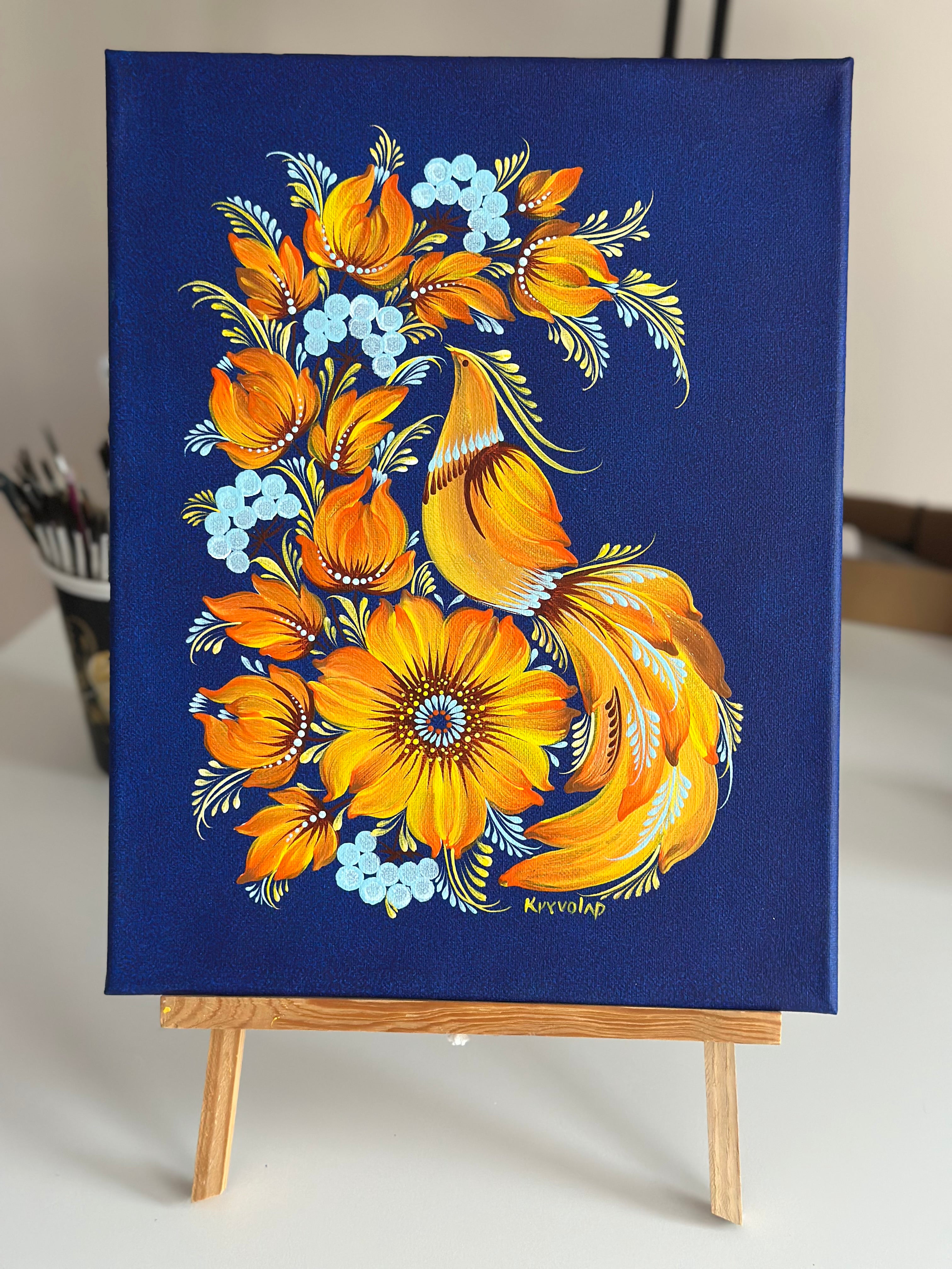 Style: Traditional Ukrainian decorative painting style Petrykivka