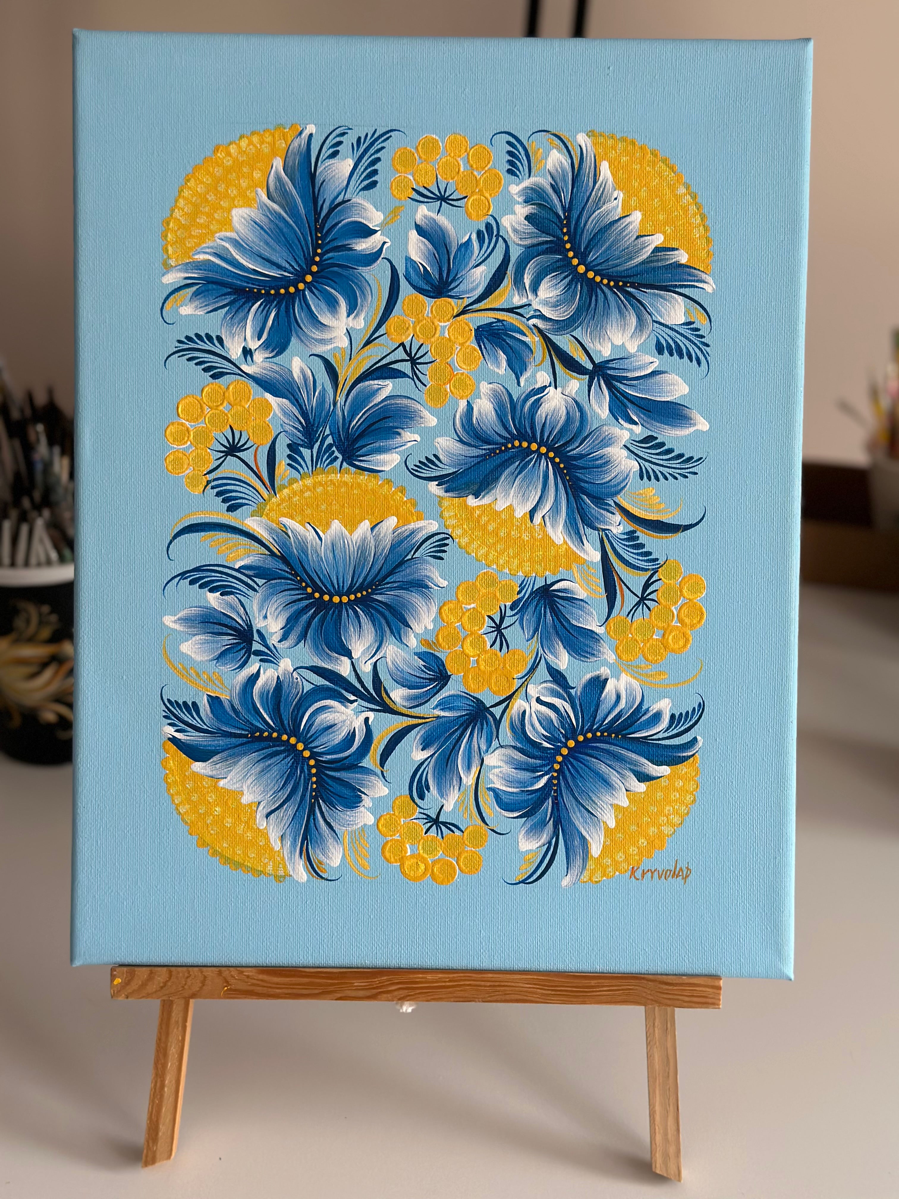 Style: Traditional Ukrainian decorative painting style Petrykivka