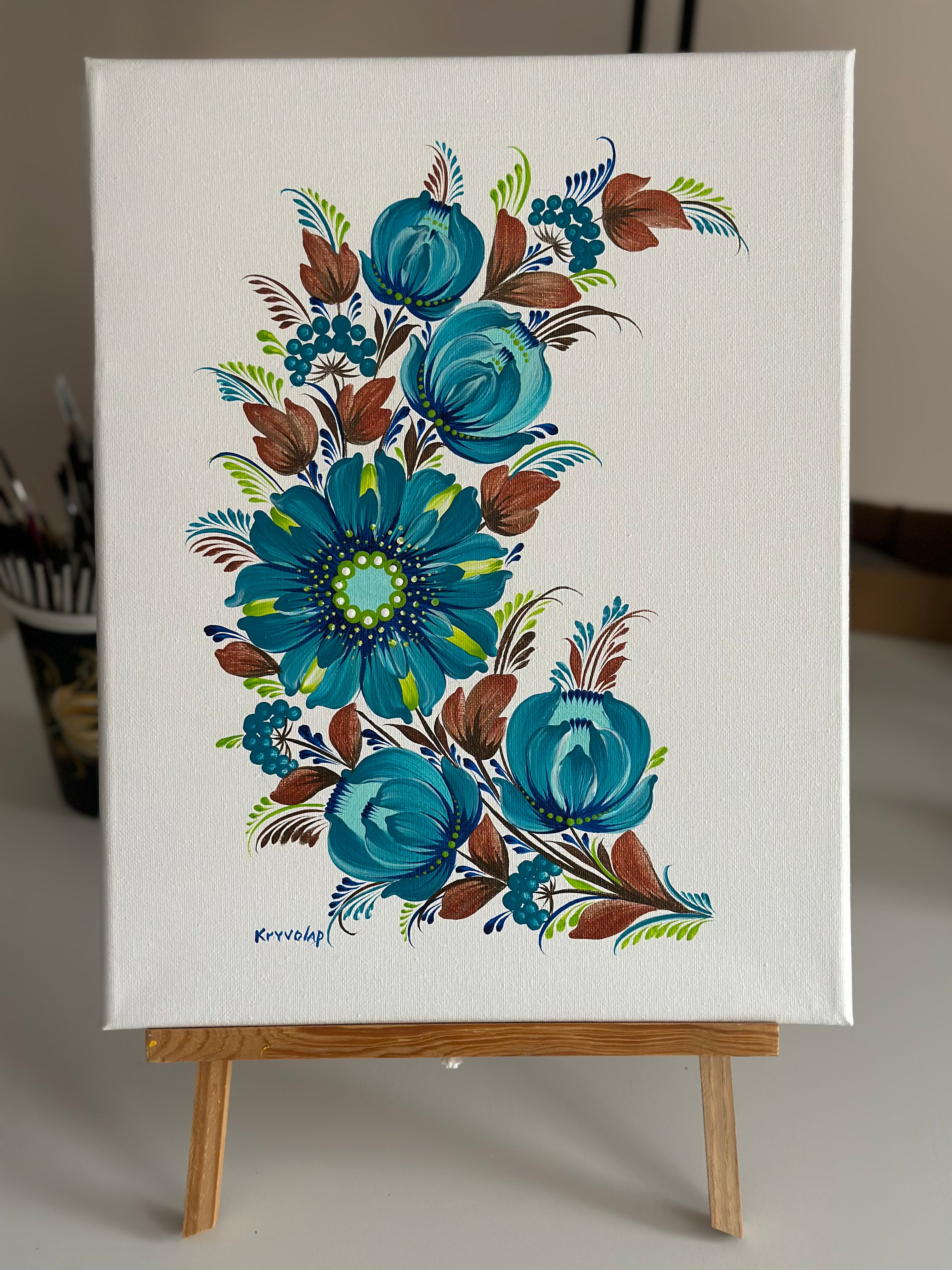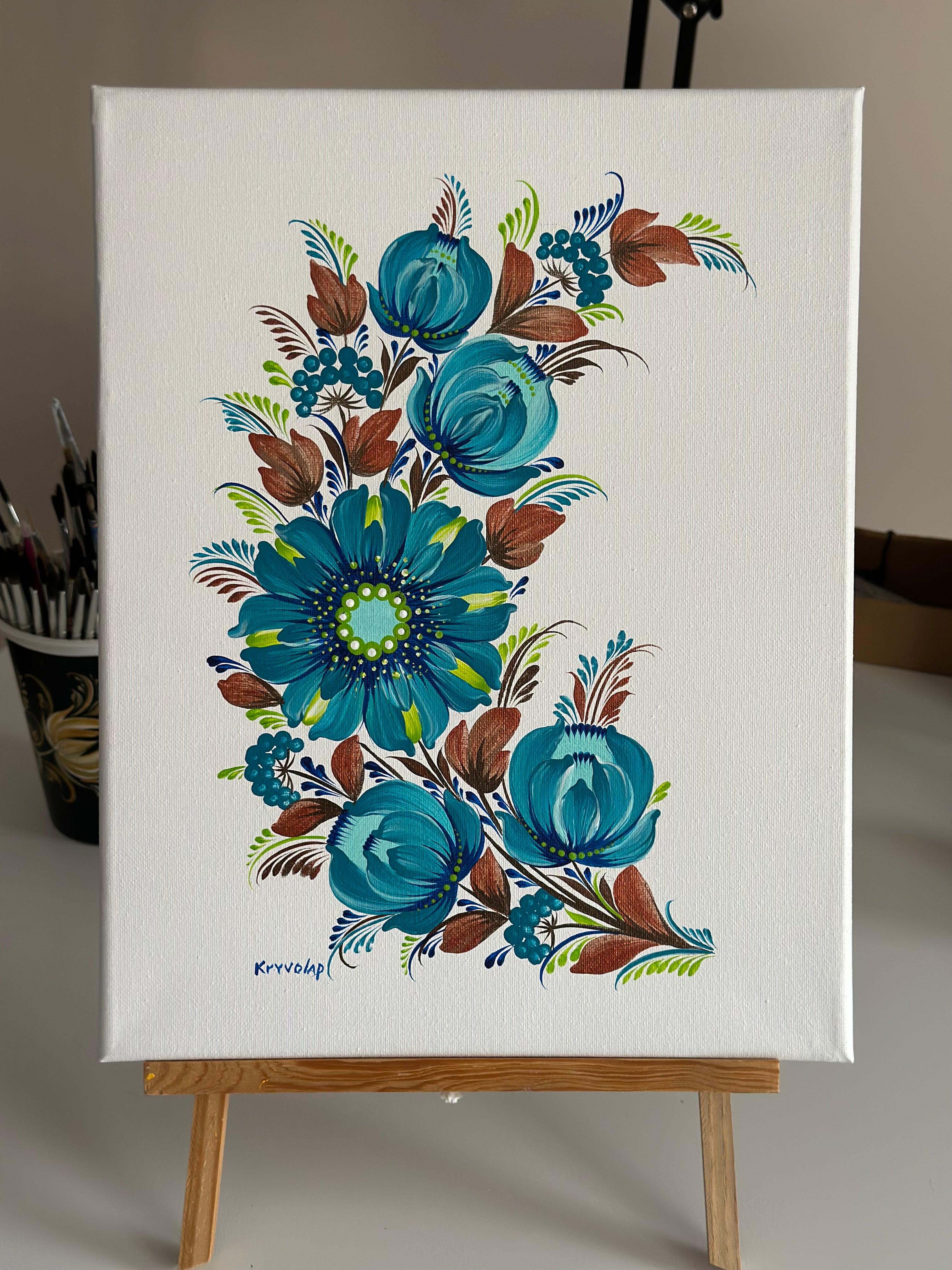 Style: Traditional Ukrainian decorative painting style Petrykivka