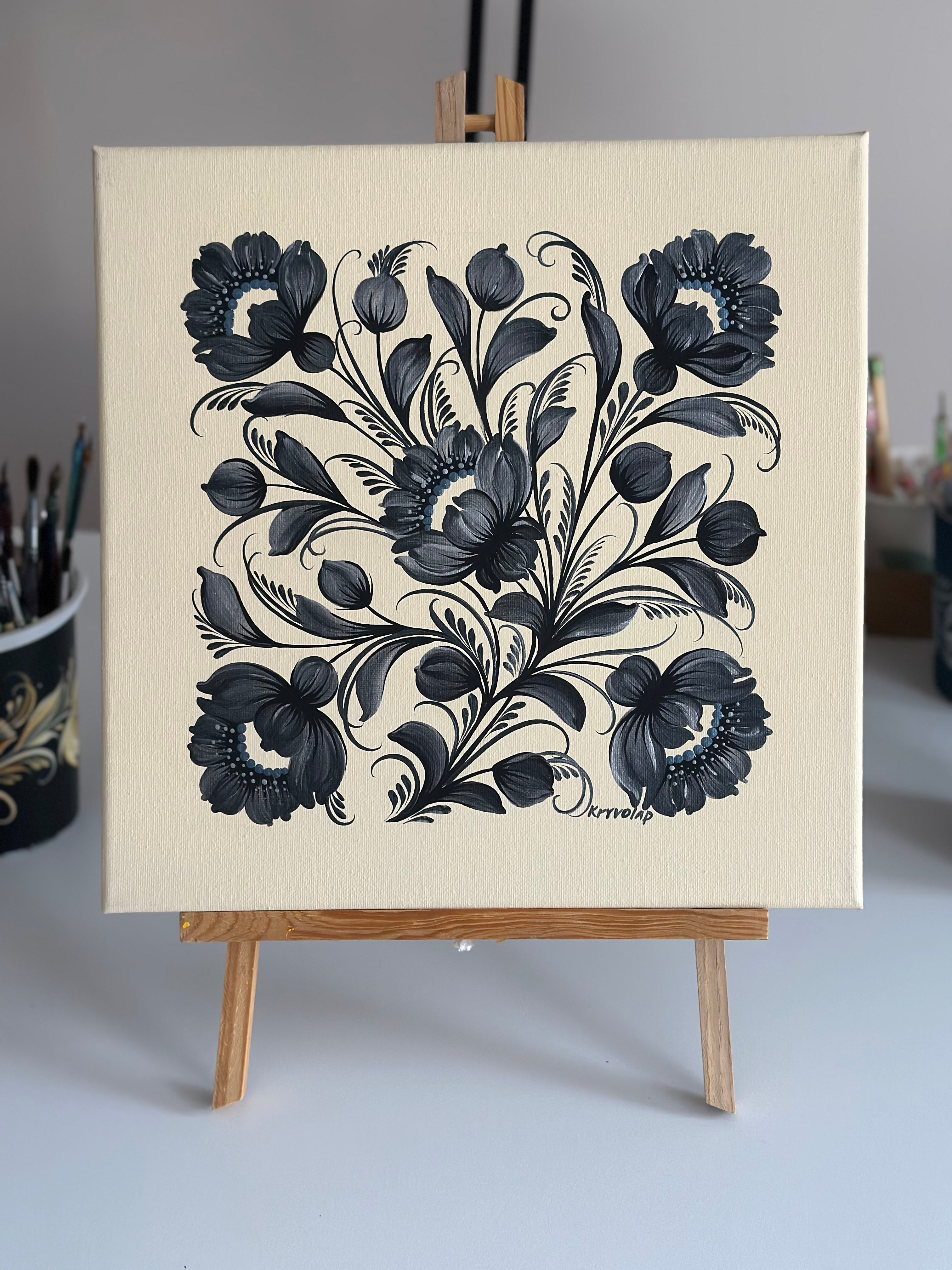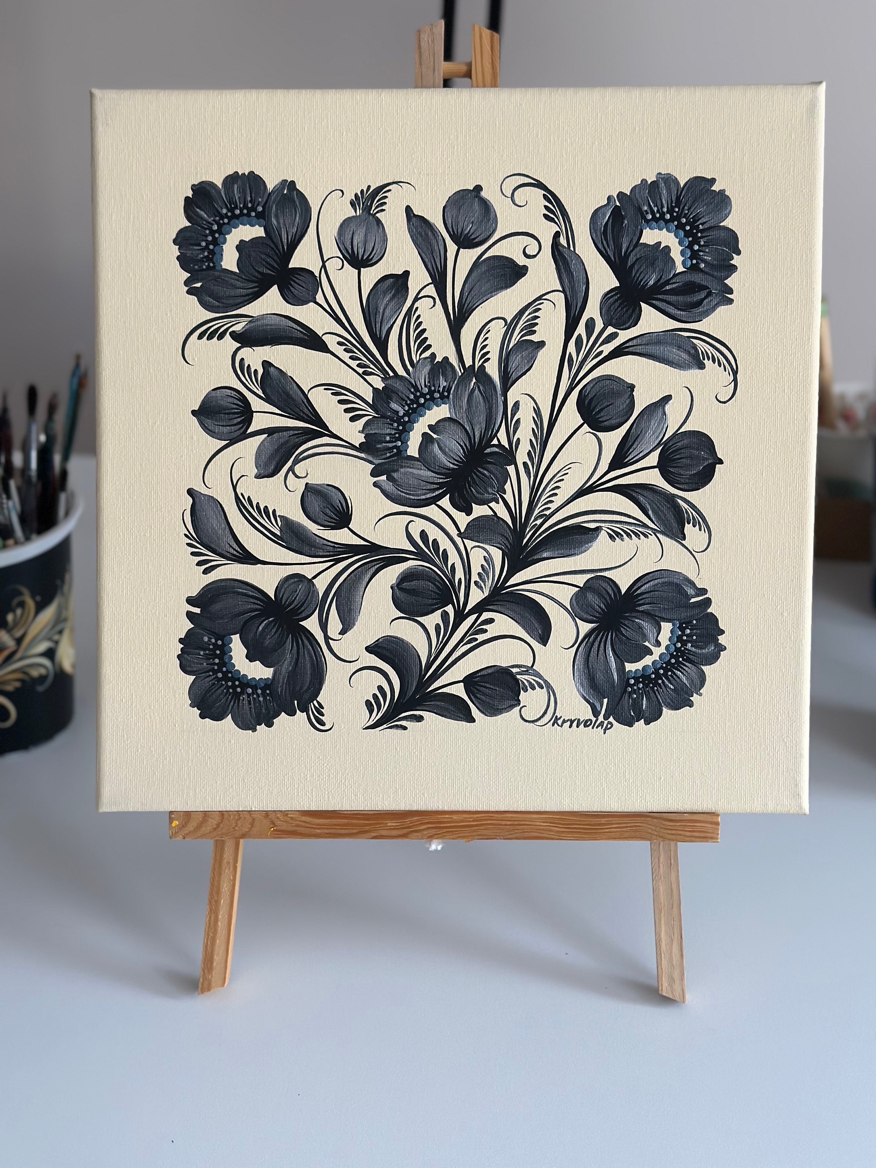 Style: Traditional Ukrainian decorative painting style Petrykivka