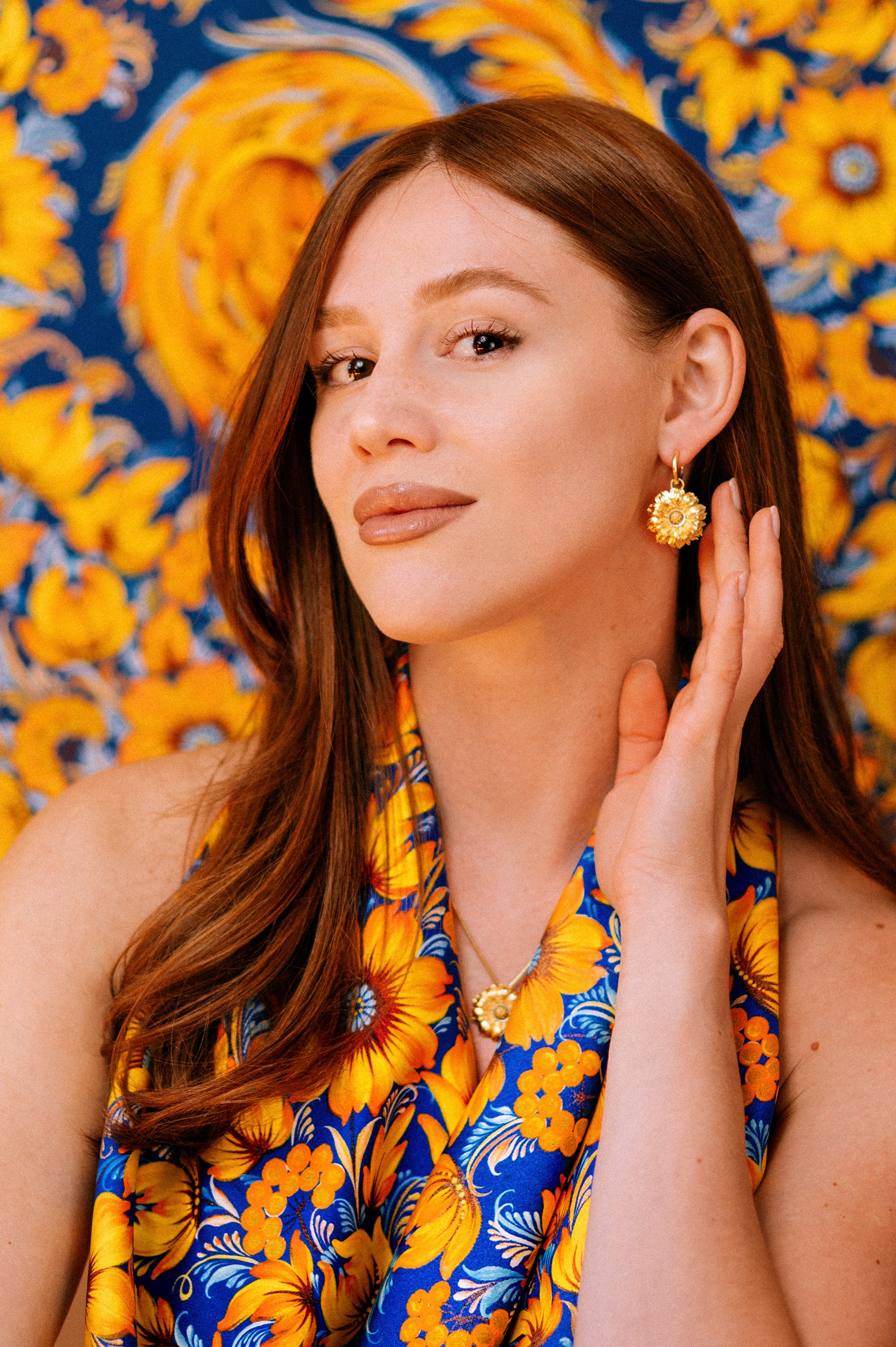 Inspired by the chamomile flower — a quiet emblem of clarity, resilience, and healing — these sculptural earrings echo the poetic soul of Petrykivka, the Ukrainian folk art form recognized by UNESCO.