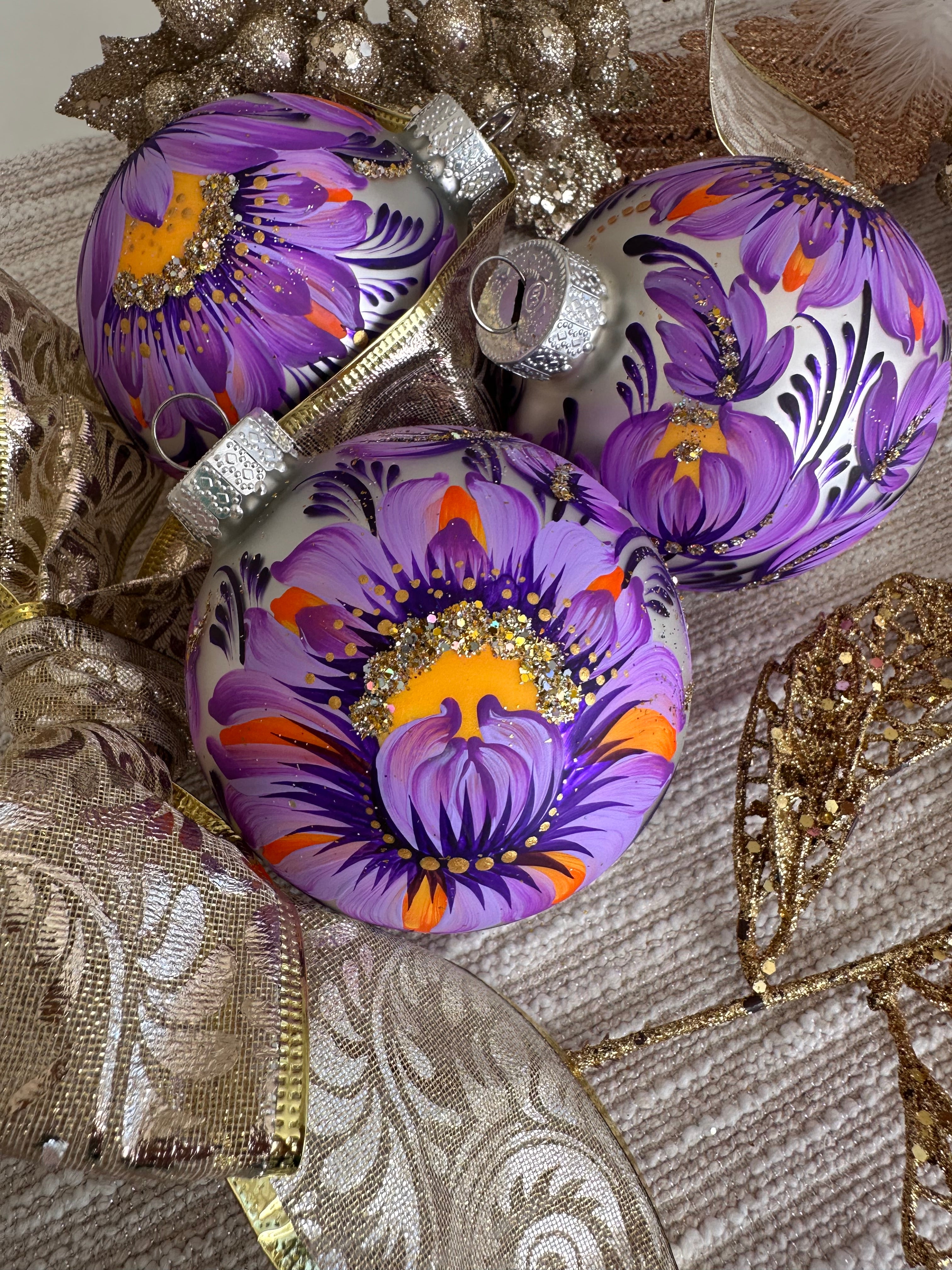 One-of-a-kind set of 3 ornaments, 100% hand-painted by Kateryna Kryvolap.