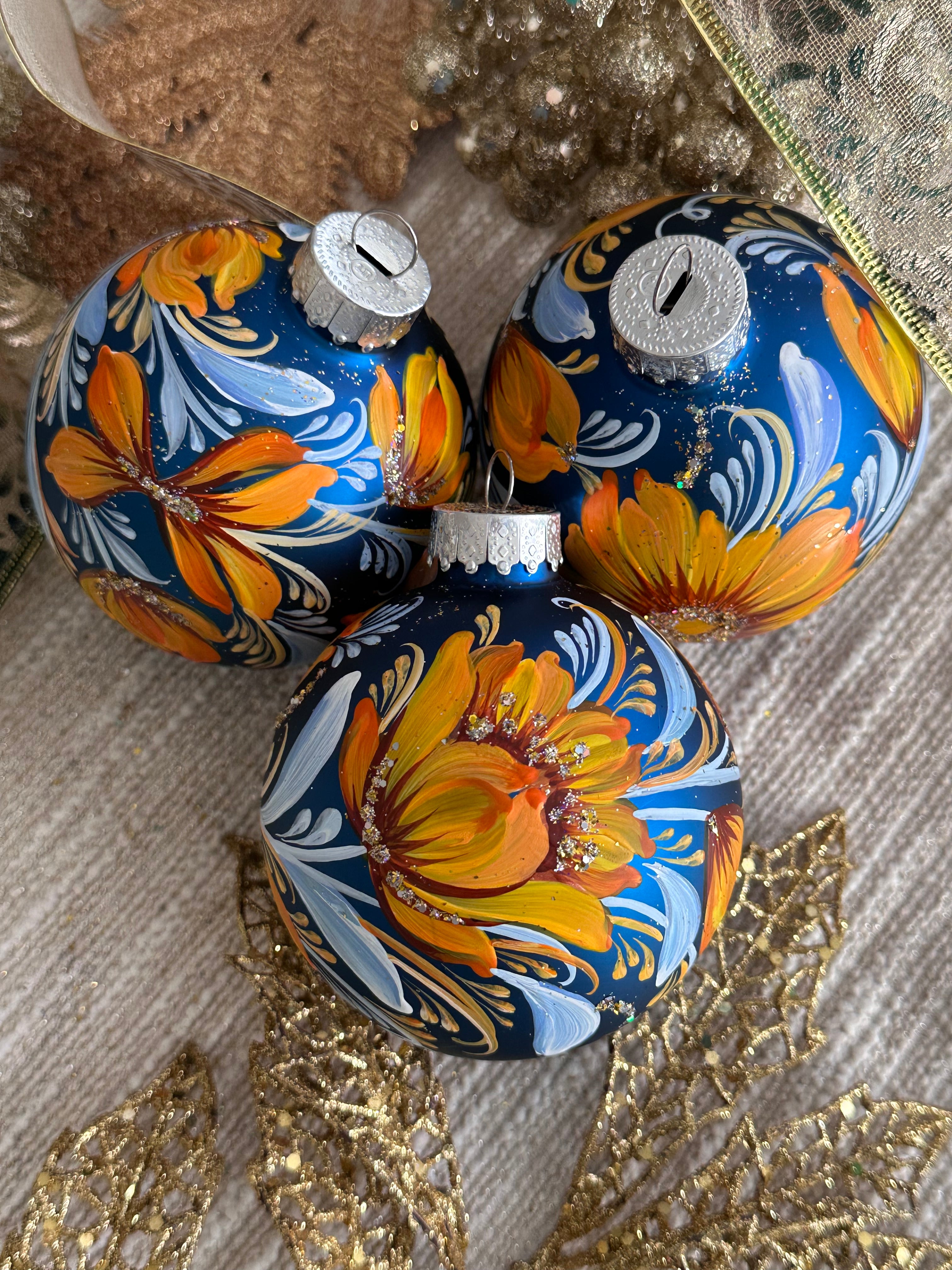 One-of-a-kind set of 3 ornaments, 100% hand-painted by Kateryna Kryvolap.