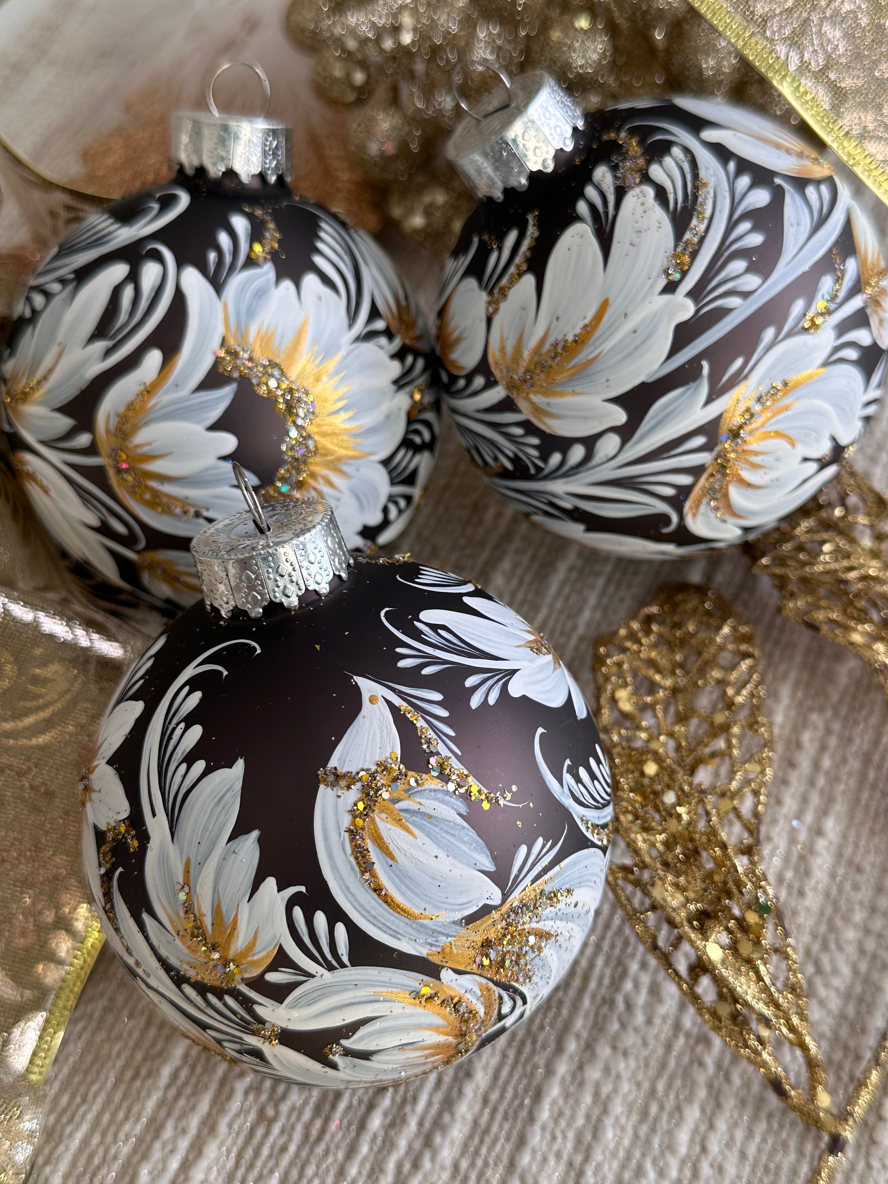 One-of-a-kind set of 3 ornaments, 100% hand-painted by Kateryna Kryvolap.